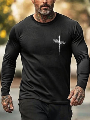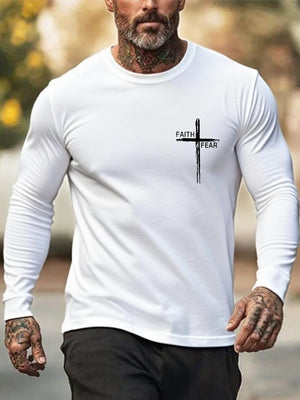 Men's Retro Faith Cross "Faith Over Fear" Print Crew Neck T-Shirt