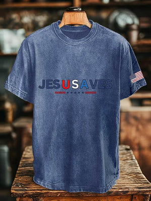 Men's Vintage USA Jesus Saves Printed Round Neck T-Shirt
