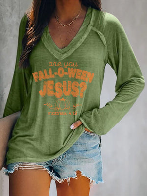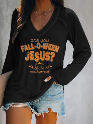 Women's Are You Fall-O-Ween Jesus Print Casual T-Shirt