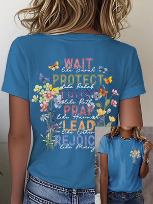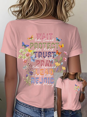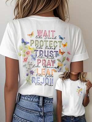 🔥Hot Sale Picks 🔥Women'S Casual Floral Faith Print Short Sleeve T-Shirt