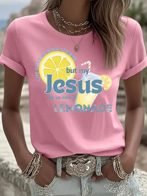Women's Life Gave Me Some Lemons, But My Jesus, He Be Makin' Lemonade Print Crew Neck T-Shirt