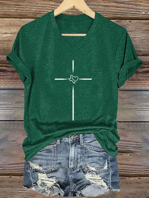Women's Texas Faith Cross Printed Casual T-Shirt