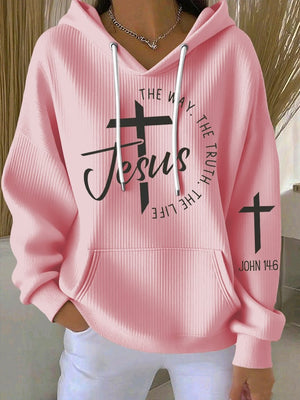 Women's The Way The Truth Jesus Print Casual Hooded Sweatshirt