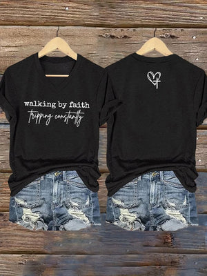 Women's Walking By Faith Tripping Constantly Print T-Shirt